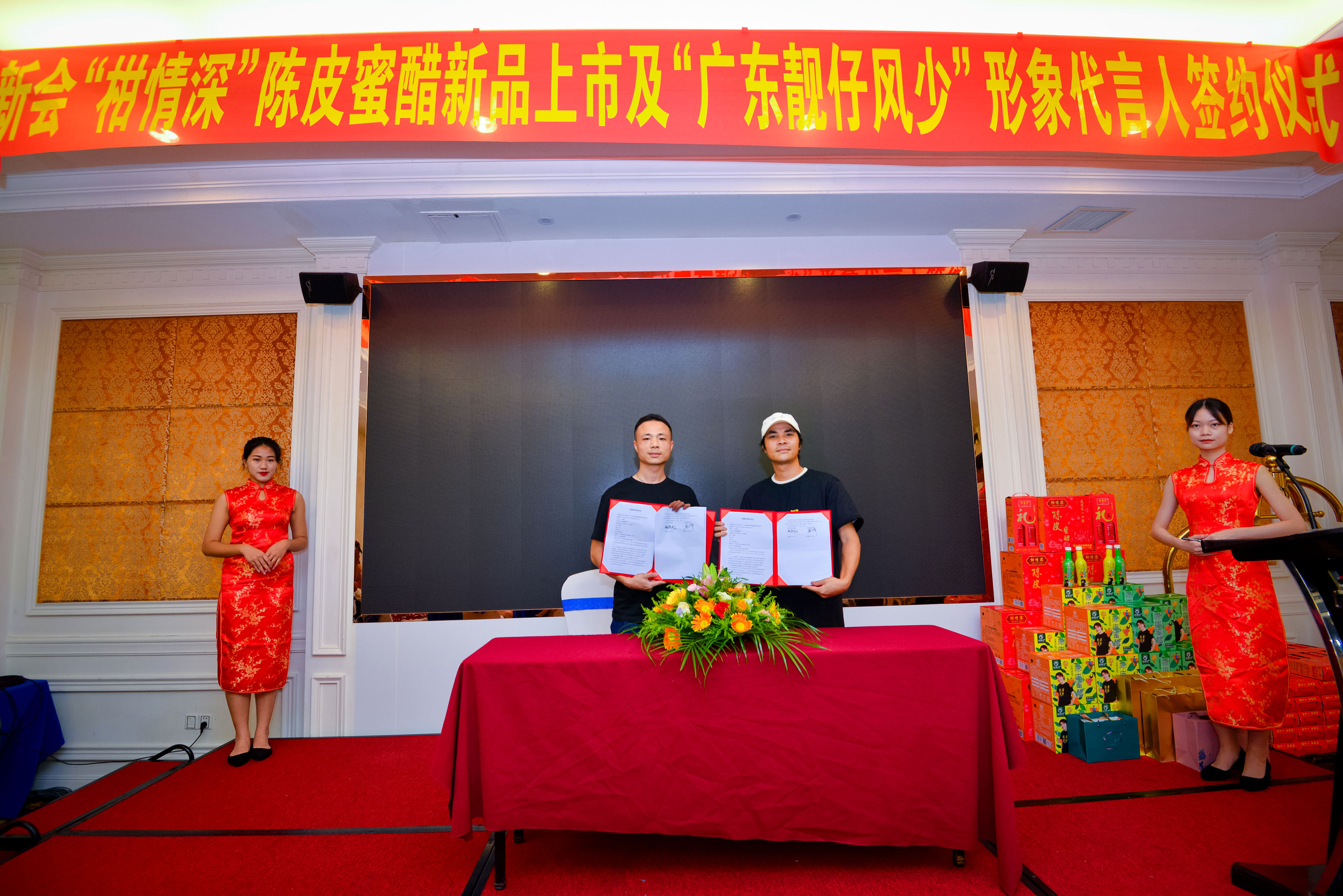 广东靓仔风少与江门市新会柑情深公司形象代言人签约仪式